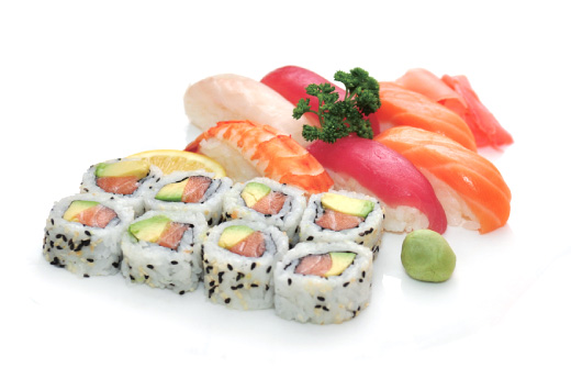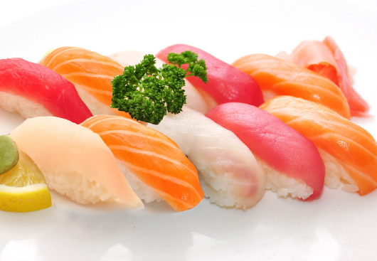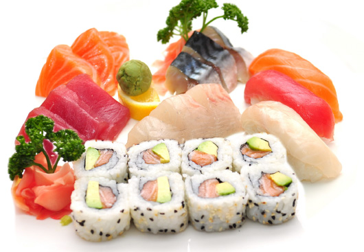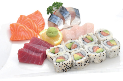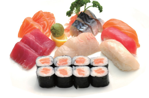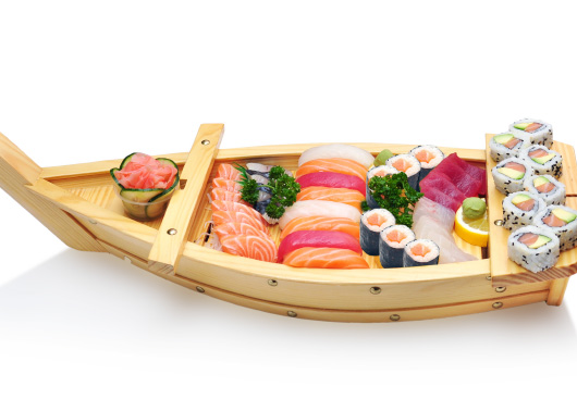 2 soupes, 2 salades, 2 riz 20 sashimi, 8 sushi, 8 maki california, 8 maki saumon