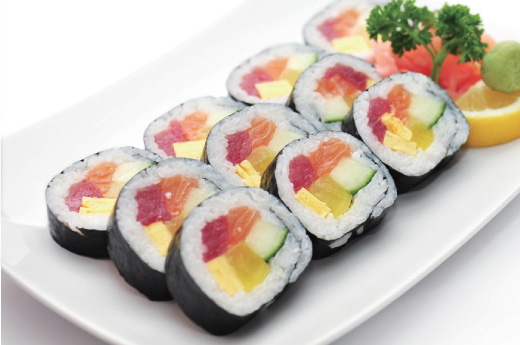Soupe, salade, riz 6 Maki Las-Vegas, 8 Maki California saumon