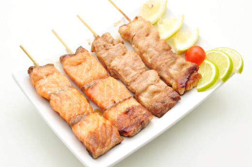 Soupe, salade, riz 4 Brochettes: 2 thons, 2 saumons