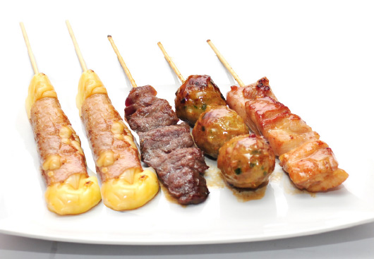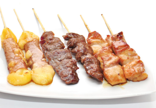 Soupe, salade, riz 7 Brochettes: 1 poulet, 1 boeuf, 2 boulette de poulet, 3 boeuf au fromage