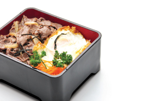 1 Salade, 1 Soupe Boeuf sauté et oeuf sur riz nature