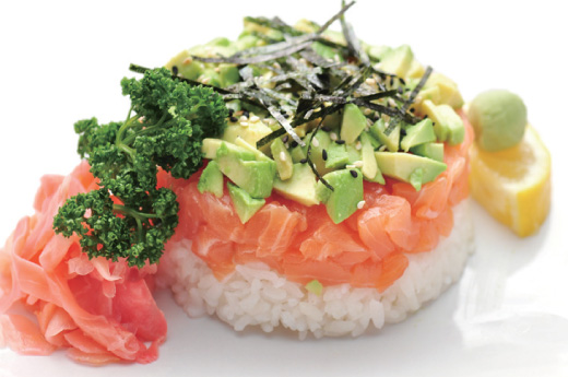1 Salade, 1 Soupe Saumon et avocat sur riz vinaigré
