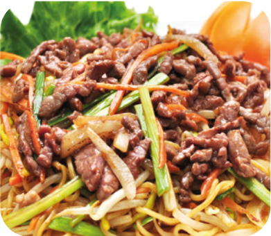 1 Salade, 1 Soupe , Nouilles sautées au boeuf avec ,oeuf, soja, et légumes